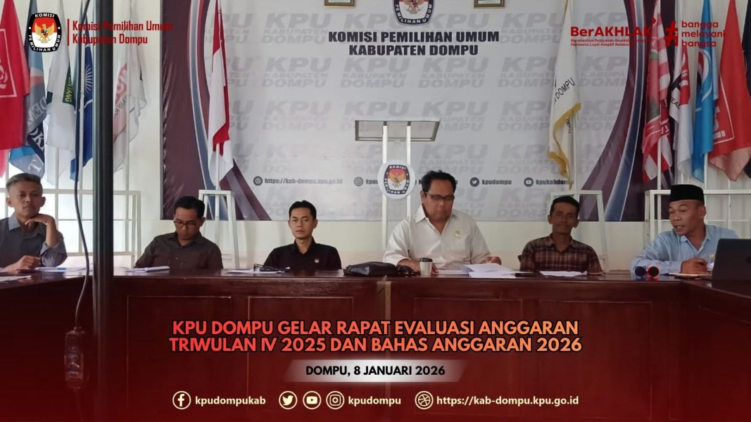 #TemanPemilih. Komisi Pemilihan Umum (KPU) Kabupaten Dompu menggelar Rapat Evaluasi Pengelolaan Anggaran Triwulan Ke-IV Tahun 2025 serta Pembahasan Anggaran Tahun 2026, Kamis (8/1/2026). Kegiatan ini berlangsung di Ruang Aula Kantor KPU Kabupaten Dompu dan dihadiri seluruh unsur pimpinan serta jajaran sekretariat. Rapat dipimpin langsung oleh Ketua KPU Kabupaten Dompu, Ari Rahman, didampingi Anggota KPU Maman Apriansyah, Yusuf, Nasarudin, dan Hidayatullah, serta Sekretaris KPU Lahmuddin bersama para Kepala Sub Bagian (Kasubbag). Dalam sambutannya saat membuka rapat, Ketua KPU Kabupaten Dompu Ari Rahman menekankan pentingnya evaluasi pengelolaan anggaran sebagai bentuk pertanggungjawaban kelembagaan sekaligus upaya peningkatan tata kelola keuangan yang transparan dan akuntabel. “Evaluasi anggaran Triwulan IV Tahun 2025 ini menjadi momentum penting untuk melihat sejauh mana pelaksanaan program dan kegiatan telah berjalan sesuai perencanaan. Selain itu, pembahasan anggaran tahun 2026 harus disusun secara cermat, realistis, dan berorientasi pada efektivitas serta efisiensi,” ujar Ari Rahman. Ia juga menyampaikan bahwa perencanaan anggaran tahun 2026 harus selaras dengan kebutuhan organisasi dan mendukung kelancaran seluruh tahapan serta program kelembagaan KPU Kabupaten Dompu. “Kami berharap melalui rapat ini, seluruh jajaran dapat memberikan masukan konstruktif agar anggaran tahun 2026 benar-benar mampu menjawab kebutuhan organisasi dan mendukung pelaksanaan tugas KPU secara profesional,” tambahnya. Usai penyampaian Ketua KPU, rapat dilanjutkan dengan pemaparan Sekretaris KPU Kabupaten Dompu, Lahmuddin, selaku Kuasa Pengguna Anggaran (KPA). Dalam penyampaiannya, Lahmuddin menekankan pentingnya sinkronisasi antara perencanaan program dan kemampuan anggaran agar seluruh kegiatan kelembagaan dapat terlaksana secara optimal dan sesuai regulasi. “Pengelolaan anggaran harus berlandaskan prinsip kehati-hatian, tertib administrasi, serta kepatuhan terhadap ketentuan peraturan perundang-undangan. Evaluasi ini menjadi ruang koreksi bersama agar ke depan perencanaan dan realisasi anggaran semakin berkualitas,” tegas Lahmuddin. Ia juga mengingatkan seluruh jajaran untuk terus memperkuat koordinasi antarbagian dalam penyusunan anggaran tahun 2026, sehingga tidak terjadi tumpang tindih kegiatan serta setiap program memiliki indikator kinerja yang jelas dan terukur. Rapat evaluasi kemudian berlangsung secara interaktif. Seluruh peserta rapat, baik unsur pimpinan maupun jajaran sekretariat, menyampaikan berbagai usul dan saran, di antaranya terkait penyempurnaan perencanaan kegiatan, penguatan monitoring dan evaluasi pelaksanaan anggaran, serta perlunya antisipasi lebih dini terhadap potensi kendala teknis dan administratif. Beberapa peserta juga mengusulkan agar penyusunan anggaran tahun 2026 lebih memperhatikan prioritas program strategis kelembagaan, efisiensi penggunaan anggaran, serta peningkatan kualitas dukungan operasional bagi seluruh unit kerja. Rapat evaluasi ini membahas secara mendalam realisasi anggaran Triwulan IV Tahun 2025, kendala yang dihadapi dalam pelaksanaannya, serta langkah-langkah perbaikan ke depan. Sementara itu, pembahasan anggaran tahun 2026 difokuskan pada penyusunan rencana kegiatan dan alokasi anggaran yang tepat sasaran dan berorientasi pada kinerja. Melalui kegiatan ini, KPU Kabupaten Dompu menegaskan komitmennya untuk terus meningkatkan kualitas pengelolaan anggaran secara profesional, transparan, dan akuntabel demi mewujudkan penyelenggaraan pemilu yang berintegritas. ....