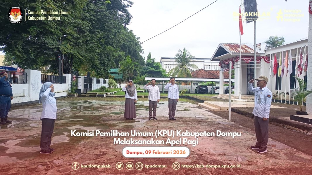#TemanPemilih. Komisi Pemilihan Umum (KPU) Kabupaten Dompu melaksanakan apel pagi pada Senin, (9/2/2026), yang berlangsung di Halaman Kantor KPU Kabupaten Dompu, Jalan Bhayangkara Nomor 06. Kegiatan tersebut menjadi momentum penting dalam memperkuat komitmen kedisiplinan dan tanggung jawab kerja seluruh jajaran sekretariat guna mendukung kinerja kelembagaan secara optimal. Apel pagi dipimpin oleh Sekretaris KPU Kabupaten Dompu, Lahmuddin, dihadiri oleh para Kepala Subbagian, dan seluruh staf sekretariat KPU Kabupaten Dompu. ....