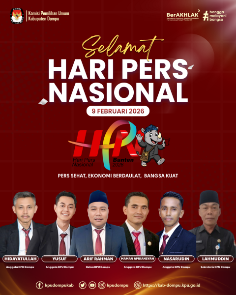 #TemanPemilih. Segenap jajaran Komisi Pemilihan Umum Kabupaten Dompu mengucapkan Selamat Hari Pers Nasional 9 Februari 2026. "Pers Sehat, Ekonomi Berdaulat, Bangsa Kuat". ....