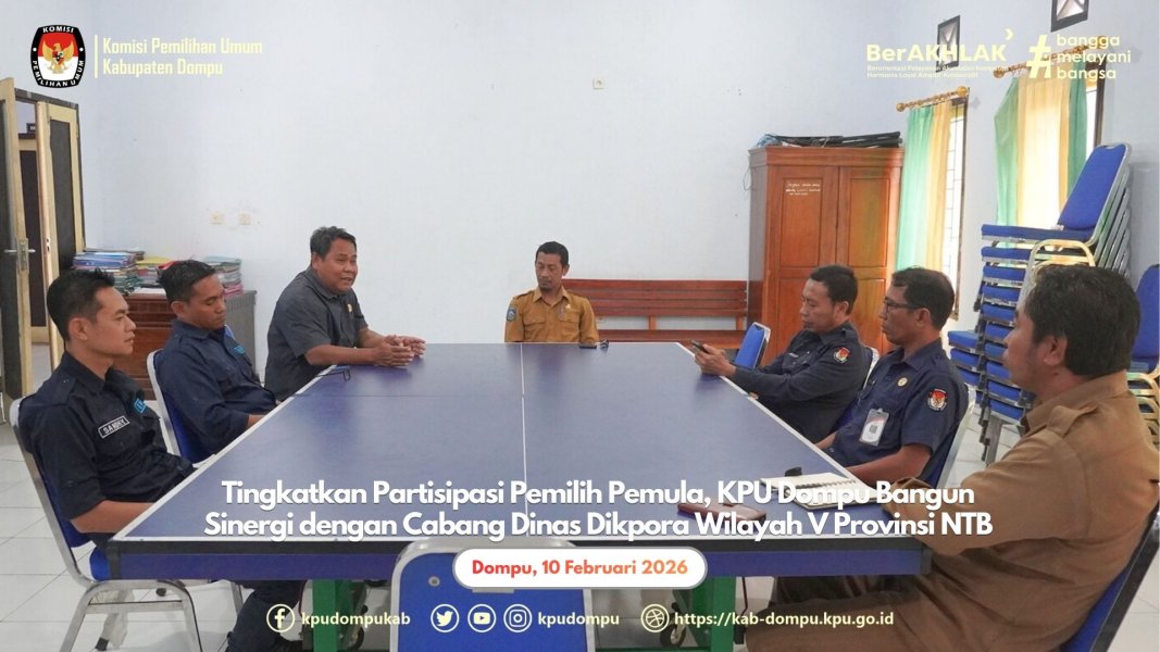 #TemanPemilih. Dalam rangka meningkatkan angka partisipasi pemilih, khususnya pemilih pemula pada Pemilu, Komisi Pemilihan Umum (KPU) Kabupaten Dompu terus memperkuat koordinasi dengan berbagai pemangku kepentingan. Salah satu langkah strategis tersebut diwujudkan melalui kunjungan silaturahmi sekaligus pembahasan rencana Perjanjian Kerja Sama pelaksanaan Sosialisasi Pendidikan Pemilih Pemula bersama Kantor Cabang Dinas Pendidikan, Kepemudaan dan Olahraga (Dikpora) Wilayah V Provinsi Nusa Tenggara Barat. Kegiatan yang dilaksanakan pada Selasa, (10/2/2026) ini dipimpin langsung oleh Ketua KPU Kabupaten Dompu, Arif Rahman, didampingi Anggota KPU Kabupaten Dompu Yusuf dan Maman Apriansyah, serta Kasubbag Partisipasi Masyarakat dan SDM Abu Hasan Taqwa. Rombongan KPU Kabupaten Dompu diterima langsung oleh Pj. Yang mewakili Kepala Kantor Cabang Dinas Dikpora Wilayah V Provinsi NTB di ruang Aula kantor setempat untuk membahas pola dan mekanisme kerja sama, khususnya dalam meningkatkan partisipasi pemilih melalui pendekatan akses pendidikan. Ketua KPU Kabupaten Dompu, Arif Rahman, menyampaikan bahwa rencana kerja sama tersebut merupakan upaya konkret KPU dalam memperkuat pendidikan demokrasi bagi generasi muda sekaligus mendorong peningkatan partisipasi pemilih pada Pemilu mendatang. Menurutnya, dunia pendidikan merupakan pintu masuk strategis dalam menanamkan nilai-nilai demokrasi sejak dini kepada pemilih pemula.“Kami memandang pendidikan sebagai pintu masuk yang sangat strategis dalam membangun kesadaran berdemokrasi. Melalui kerja sama ini, KPU Kabupaten Dompu berharap pendidikan pemilih pemula dapat dilaksanakan secara terstruktur dan berkelanjutan, sehingga berdampak langsung pada peningkatan partisipasi pemilih, khususnya pada Pemilu,” ujar Arif Rahman. Sementara itu, Anggota KPU Kabupaten Dompu Divisi Sosialisasi, Pendidikan Pemilih, Partisipasi Masyarakat dan SDM, Yusuf, menegaskan bahwa pemilih pemula merupakan segmen yang sangat penting dan membutuhkan pendekatan khusus. Melalui kerja sama ini, KPU Kabupaten Dompu akan memaksimalkan pelaksanaan program Go Vote sebagai salah satu strategi peningkatan partisipasi pemilih pemula dan Pemutakhiran data pemilih. Menurutnya, program Go Vote dirancang untuk mendekatkan informasi kepemiluan kepada generasi muda dengan pendekatan yang edukatif, komunikatif, dan sesuai dengan karakteristik pemilih pemula di lingkungan pendidikan.“Melalui sosialisasi yang terintegrasi dengan dunia pendidikan, KPU Kabupaten Dompu akan memaksimalkan pelaksanaan program Go Vote. Program ini kami dorong untuk mendukung upaya pemutakhiran data pemilih berkelanjutan agar pemilih tidak hanya mengetahui tahapan Pemilu, tetapi juga terdorong untuk menggunakan hak pilihnya secara sadar dan bertanggung jawab,” jelas Yusuf. Hal senada disampaikan Anggota KPU Kabupaten Dompu Divisi Hukum dan Pengawasan, Maman Apriansyah. Ia menekankan bahwa pendidikan pemilih pemula juga penting dari sisi pemahaman hukum dan kepatuhan terhadap regulasi kepemiluan. Menurutnya, pemilih yang memahami aturan akan berkontribusi pada terselenggaranya Pemilu yang berintegritas dan berkeadilan.“Pendidikan pemilih tidak hanya sebatas mengenalkan hak memilih, tetapi juga menanamkan pemahaman hukum kepemiluan serta pentingnya menjaga integritas Pemilu. Dengan sinergi bersama Dikpora, kami berharap lahir pemilih pemula yang sadar hukum, taat aturan, dan berpartisipasi secara bertanggung jawab,” ungkap Maman Apriansyah. Pj. Yang mewakili Kepala Kantor Cabang Dinas Dikpora Wilayah V Provinsi NTB menyambut baik rencana kerja sama tersebut dan menyatakan kesiapan pihaknya untuk bersinergi dengan KPU Kabupaten Dompu. Ia menilai program pendidikan pemilih sejalan dengan upaya pembentukan karakter peserta didik yang memiliki kesadaran demokrasi dan tanggung jawab sebagai warga negara.“Kami mendukung penuh inisiatif KPU Kabupaten Dompu. Sinergi ini diharapkan mampu memberikan edukasi politik yang sehat bagi peserta didik, sehingga mereka siap berpartisipasi aktif sebagai pemilih pada Pemilu,” ujarnya. Melalui rencana kerja sama ini, KPU Kabupaten Dompu berharap pelaksanaan sosialisasi pendidikan pemilih pemula dapat berjalan secara efektif dan berkesinambungan, serta memberikan kontribusi nyata dalam meningkatkan kualitas dan kuantitas partisipasi pemilih, khususnya pemilih pemula, pada setiap tahapan dan penyelenggaraan Pemilu di Kabupaten Dompu. (Humas KPU Dompu) ....