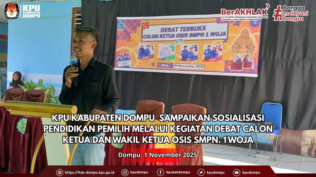 KPU Kabupaten Dompu Sampaikan Sosialisasi Pendidikan Pemilih melalui kegiatan Debat Calon Ketua dan Wakil Ketua OSIS SMPN. 1 Woja