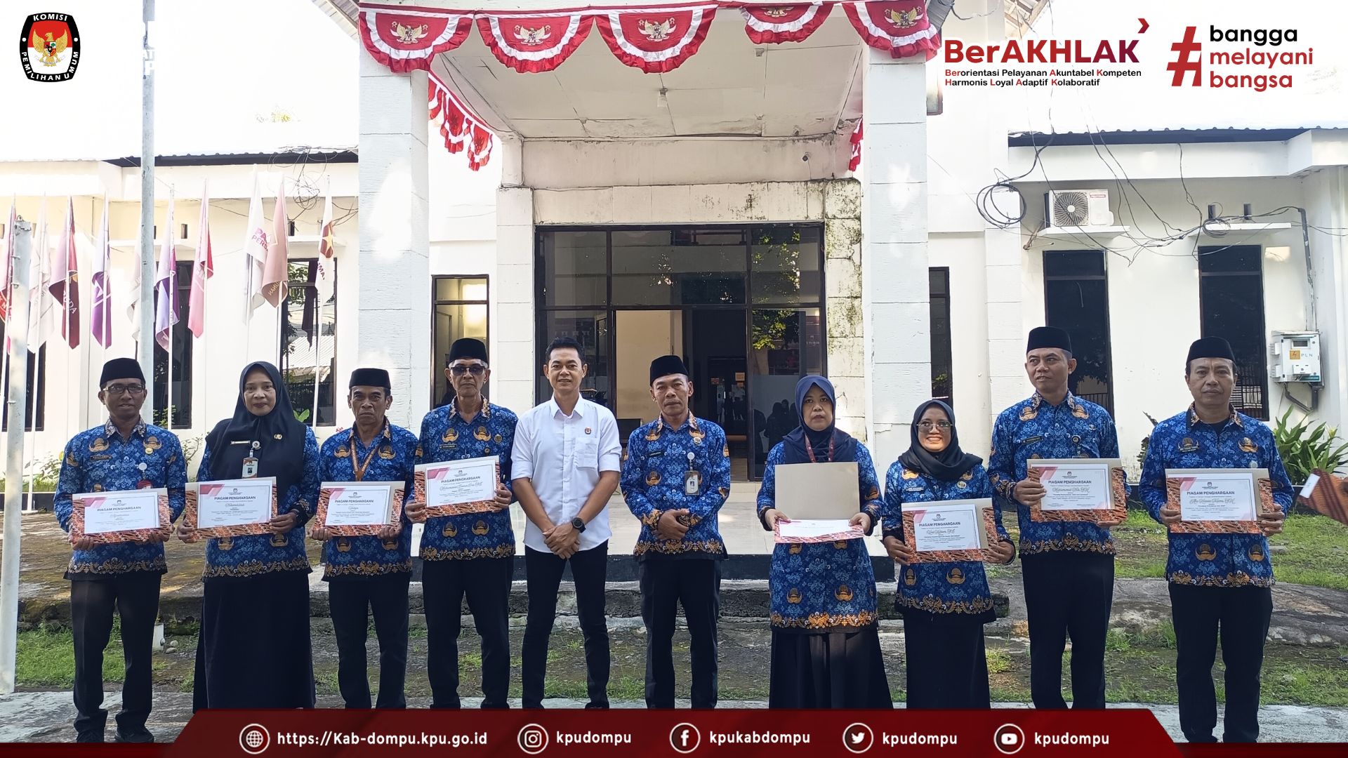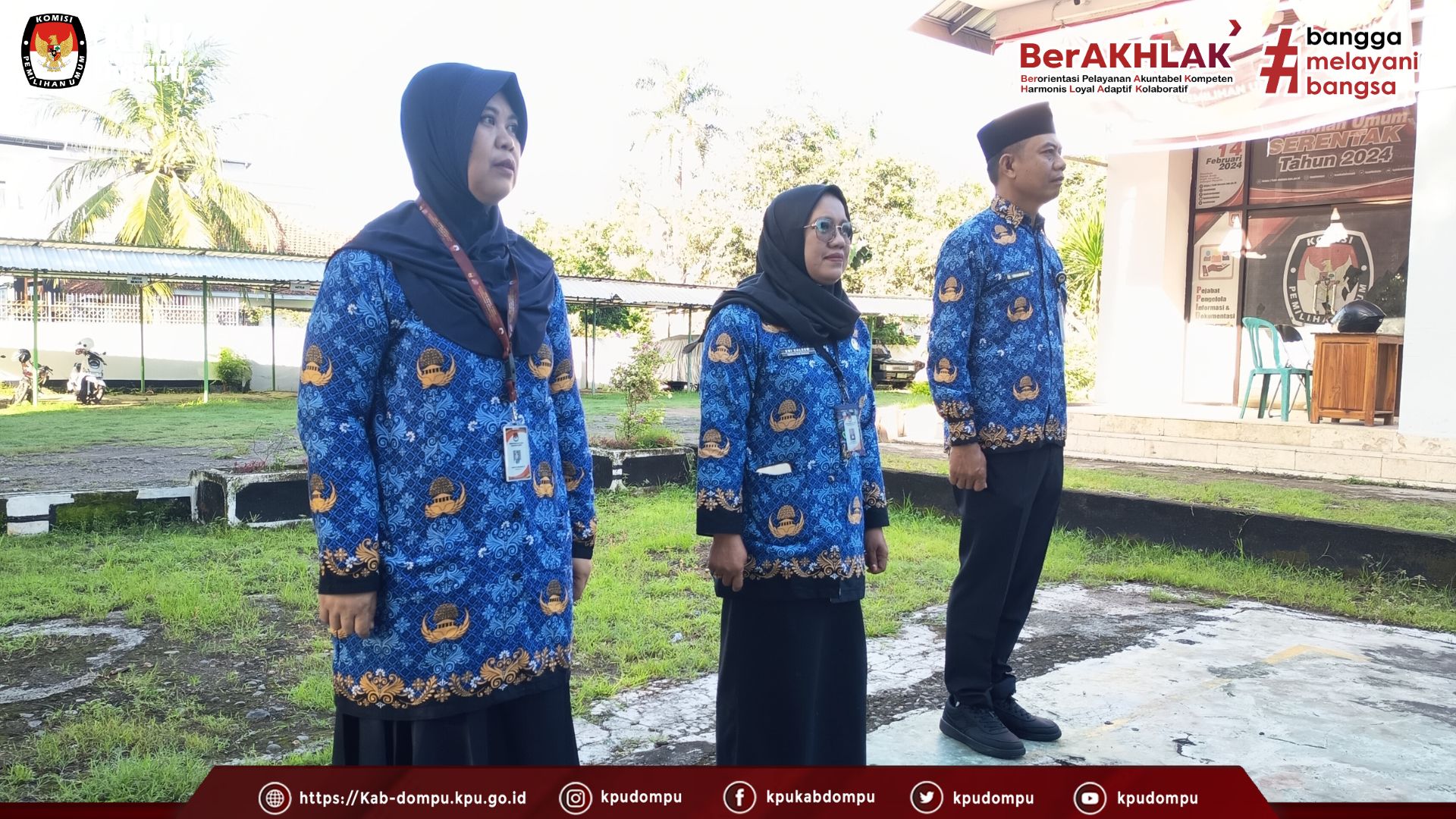 Upacara di KPU Kabupaten Dompu dipimpin oleh Kasubbag Parmas dan SDM, Abu Hasan Taqwa. Sebagai penutup rangkaian kegiatan, Sekretaris KPU Kabupaten Dompu, Lahmuddin, menyerahkan penghargaan kepada empat Kasubbag dan empat staf yang dinilai disiplin serta bertanggung jawab dalam menjalankan tugas sebagai ASN.