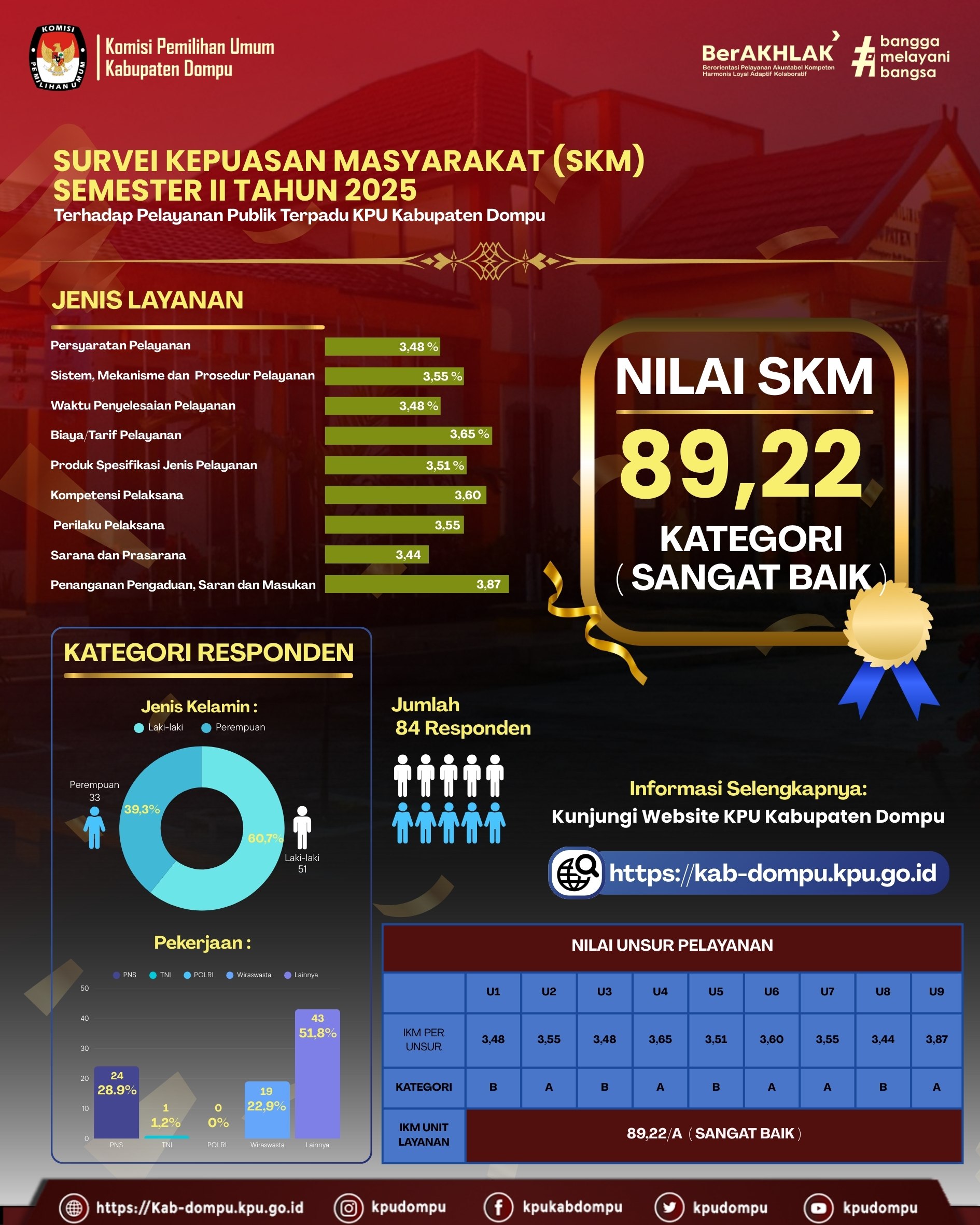 #TemanPemilih. Komisi Pemilihan Umum (KPU) Kabupaten Dompu menyampaikan hasil Survei Kepuasan Masyarakat (SKM) Semester II Tahun 2025 terhadap pelayanan publik terpadu yang diselenggarakan KPU Kabupaten Dompu.