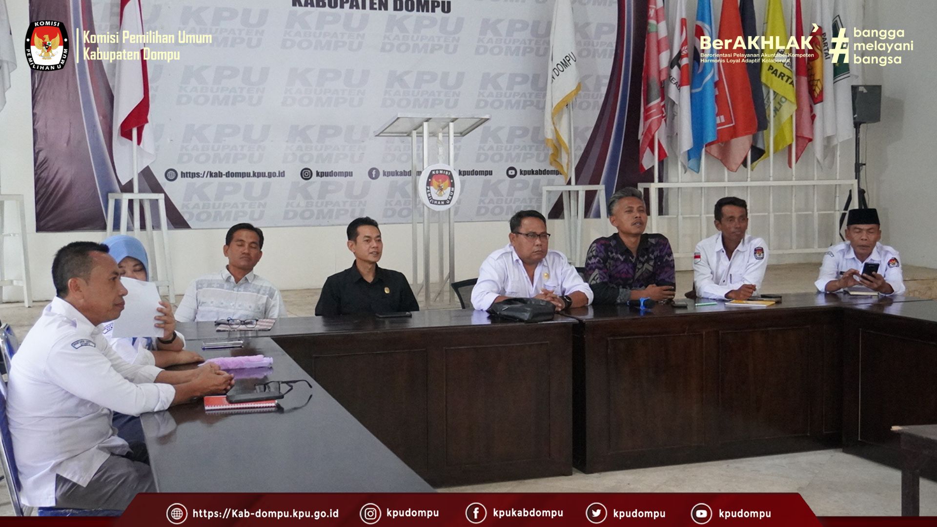 Rapat yang berlangsung di Ruang Aula KPU Kabupaten Dompu, Jalan Bhayangkara Nomor 06 Dompu tersebut dipimpin langsung oleh Ketua KPU Kabupaten Dompu, Arif Rahman, dan dihadiri oleh para Anggota KPU Kabupaten Dompu, yakni Maman Apriansyah, Yusuf, Hidayatullah, dan Nasarudin, serta Sekretaris KPU Kabupaten Dompu, Lahmuddin, bersama seluruh Kasubbag.