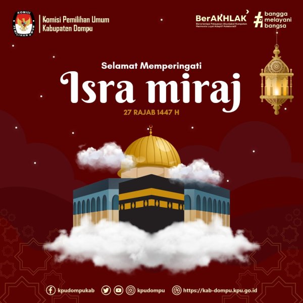 #TemanPemilih. Segenap jajaran Komisi Pemilihan Umum Kabupatan Dompu mengucapkan Selamat Memperingati Isra Mi'raj Nabi Muhammad SAW. 1447 H / 2026 M.