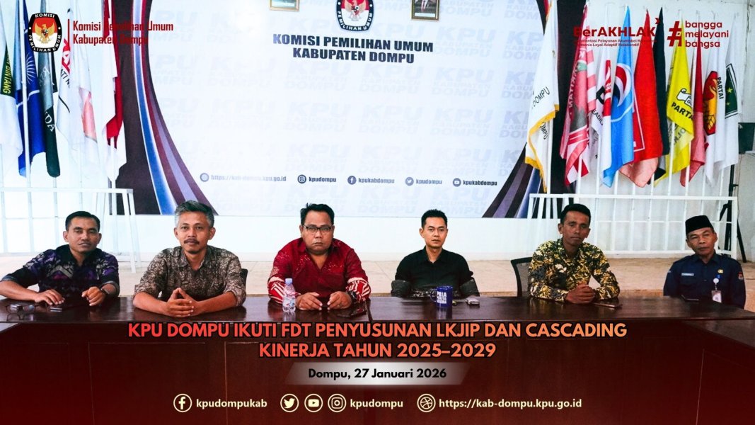 #TemanPemilih. Pada Selasa, (27/1/2026), Komisi Pemilihan Umum (KPU) Kabupaten Dompu mengikuti kegiatan Forum Diskusi Terpumpun (FDT) Penyusunan Laporan Kinerja Instansi Pemerintah (LKjIP) KPU Tahun 2025 serta Penyusunan Cascading Kinerja dan Indikator Kinerja Utama (IKU) KPU, KPU Provinsi, dan KPU Kabupaten/Kota Tahun 2025–2029.
