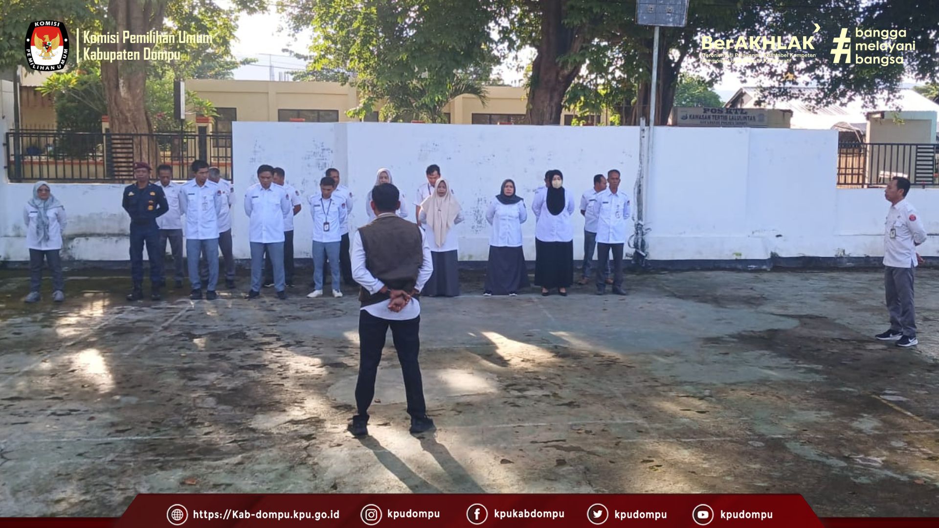 Apel pagi dipimpin oleh Ketua Divisi Hukum dan Pengawasan KPU Kabupaten Dompu, Maman Apriansyah, serta diikuti oleh para Kepala Subbagian dan seluruh staf sekretariat KPU Kabupaten Dompu.
