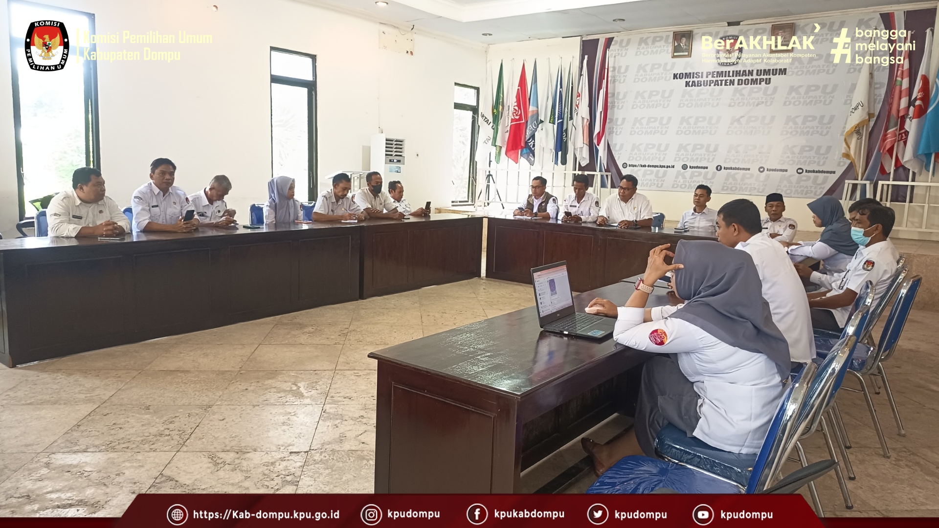 #TemanPemilih. Komisi Pemilihan Umum Kabupaten Dompu menggelar Rapat Pleno Mingguan pada Senin (9/3/2026) di Aula Kantor KPU Kabupaten Dompu. Rapat tersebut dipimpin langsung oleh Ketua KPU Kabupaten Dompu, Arif Rahman, dan dihadiri oleh Anggota KPU Dompu Maman Apriansyah, Yusuf, dan Nasarudin. Turut hadir Sekretaris KPU Kabupaten Dompu, Lahmuddin, bersama para Kepala Subbagian di lingkungan Sekretariat KPU Kabupaten Dompu.