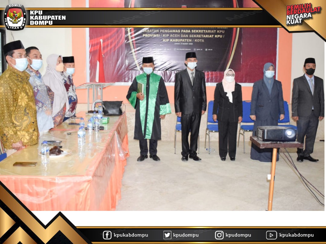 #TemanPemilih. Empat orang Pejabat Pengawas Eselon IV pada Sekretariat Komisi Pemilihan Umum (KPU) Kabupaten Dompu dilantik dan ambil sumpah/janji melalui zoom meeting oleh Sekretaris Komisi Pemilihan Umum (KPU) Provinsi Nusa Tenggara Barat Mars Ansori Wijaya di dampingi oleh Rohaniawan. Jumat, (11/3).
