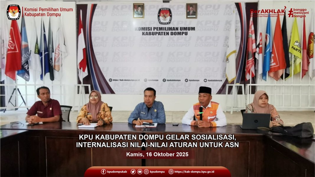 Dompu, TemanPemilih — Komisi Pemilihan Umum (KPU) Kabupaten Dompu menggelar kegiatan sosialisasi Peraturan Pemerintah (PP) Nomor 94 Tahun 2021 tentang Disiplin Pegawai Negeri Sipil (PNS), bertempat di Aula KPU Kabupaten Dompu, Kamis (16/10/2025). Kegiatan ini dipimpin langsung oleh Sekretaris KPU Kabupaten Dompu Lahmuddin dan diikuti oleh para Kasubbag serta seluruh staf sekretariat. Sosialisasi ini bertujuan untuk meningkatkan pemahaman terhadap aturan disiplin pegawai, sekaligus memperkuat budaya kerja yang berintegritas dan profesional di lingkungan lembaga penyelenggara pemilu tersebut. Dalam arahannya, Sekretaris KPU Kabupaten Dompu menegaskan pentingnya penerapan nilai-nilai kedisiplinan sebagai wujud tanggung jawab ASN dalam menjalankan tugas. “Disiplin adalah dasar dari profesionalitas. Setiap pegawai harus memahami kewajiban dan tanggung jawabnya sesuai ketentuan yang diatur dalam PP Nomor 94 Tahun 2021. Dengan memahami aturan ini, kita dapat bekerja lebih tertib, transparan, dan berintegritas,” ujarnya. Lebih lanjut, ia menjelaskan bahwa aturan disiplin bukan hanya bersifat pembinaan, tetapi juga memuat sanksi yang tegas bagi ASN yang melanggarnya. “Dalam PP Nomor 94 Tahun 2021 sudah diatur jelas mengenai sanksi bagi ASN yang melanggar disiplin. Ada tiga tingkatan hukuman, yaitu ringan, sedang, dan berat. Bentuk sanksinya bisa berupa teguran lisan, penundaan kenaikan gaji berkala, penurunan jabatan, hingga pemberhentian dengan hormat atau tidak dengan hormat. Semua itu dilakukan sesuai tingkat pelanggaran yang dilakukan,” tegasnya. Sekretaris juga menambahkan bahwa penegakan disiplin bukan semata untuk menghukum, melainkan untuk menumbuhkan kesadaran bersama agar seluruh ASN bekerja sesuai aturan dan nilai-nilai integritas. “Kita ingin menciptakan lingkungan kerja yang sehat dan produktif. Kedisiplinan bukan untuk membatasi, tetapi untuk menuntun kita agar selalu berada di jalur yang benar dalam memberikan pelayanan publik,” tambahnya. Melalui sosialisasi ini, diharapkan seluruh pegawai di lingkungan KPU Dompu dapat memahami dan menerapkan aturan tersebut dalam pelaksanaan tugas sehari-hari. Dengan terselenggaranya kegiatan ini, KPU Kabupaten Dompu berkomitmen untuk terus memperkuat tata kelola kelembagaan yang bersih, akuntabel, dan berintegritas tinggi sebagai bagian dari upaya mewujudkan reformasi birokrasi yang berkelanjutan.