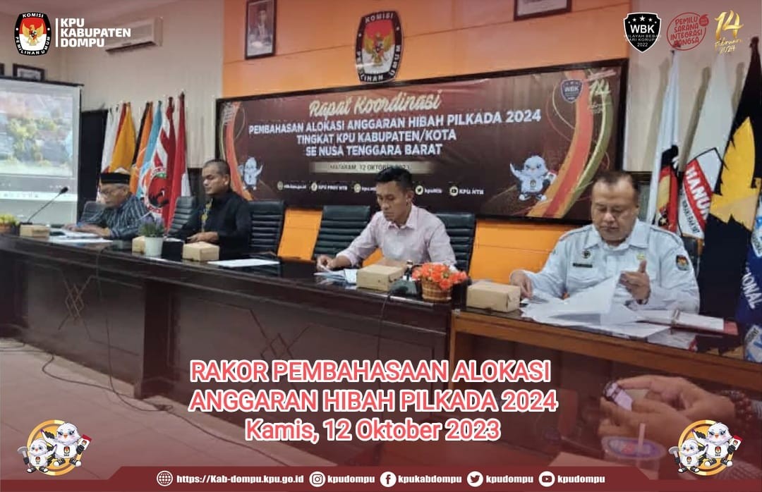 ‘Selanjutnya untuk diketahui jumlah Anggaran Pilkada Dompu Tahun 2024 adalah sebesar 20,7 M, Cost sharing Anggaran dengan Pemerintah Provinsi NTB dengan komponen pendanaan sebagaimana diatur dalam Keputusan Gubernur NTB Nomor 900-539 Tahun 2023 tentang Komponen pendanaan bersama antara Pemerintah Provinsi NTB dan Pemerintah Kabupaten/Kota dalam penyelenggaraan Pemilihan Kepala Daerah serentak Tahun 2024 di Provinsi NTB sebesar 6.1 M, digunakan untuk membiayai Honorarium Panitia Pemilihan Kecamatan (PPK) dan Panitia Pemumgutan Suara (PPS) beserta Sekretariatnya serta membiayai tahapan-tahapan Pilkada yang dilaksanakan di Provinsi, selanjutnya menjadi porsi Pemerintah Kabupaten Dompu yang hari ini telah dituangkan dalam NPHD sebesar Rp. 14.6 M, untuk mebiayai Tahapan yang dilaksanakan di Tingkat Kabupaten serta Honorarium Kelompok Penyelenggara Pemungutan Suara (KPPS)” tambah Arifuddin.