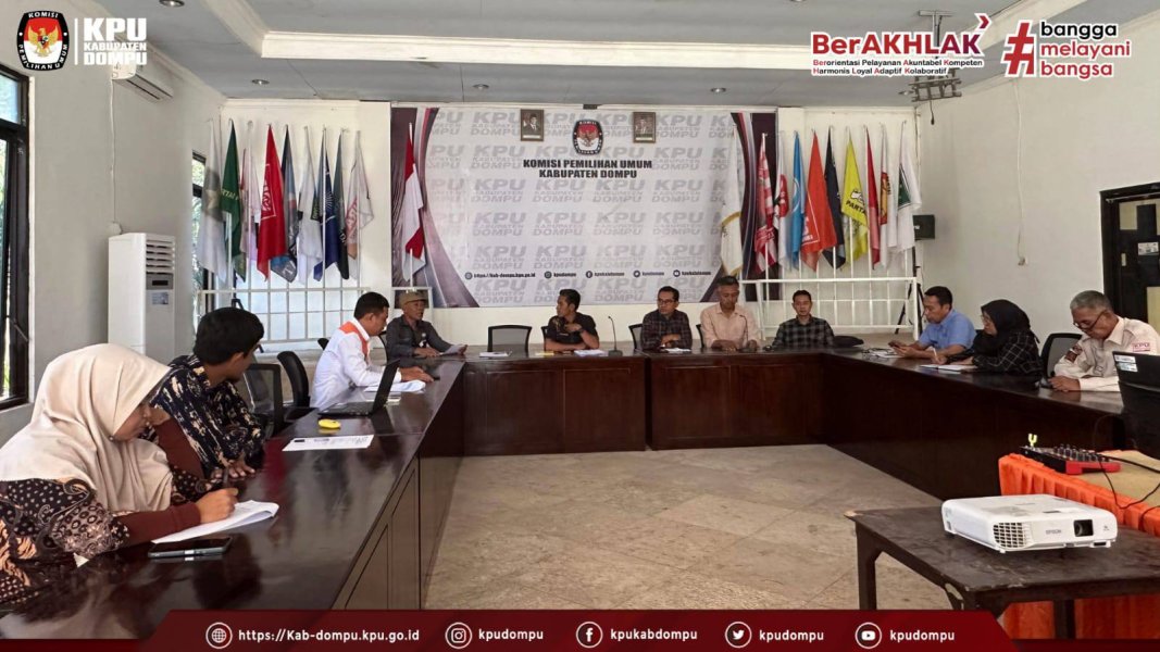 Rapat yang berlangsung di Aula Kantor KPU Kabupaten Dompu, Jalan Bhayangkara Nomor 06 Dompu, tersebut dipimpin oleh Plh. Ketua KPU Kabupaten Dompu, Maman Apriansyah, yang juga menjabat sebagai Divisi Hukum dan Pengawasan.