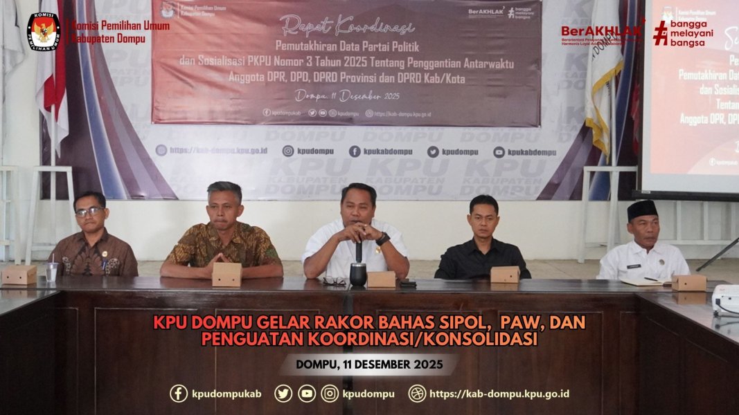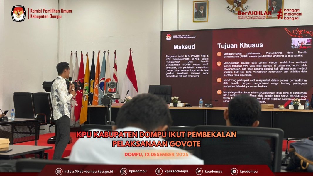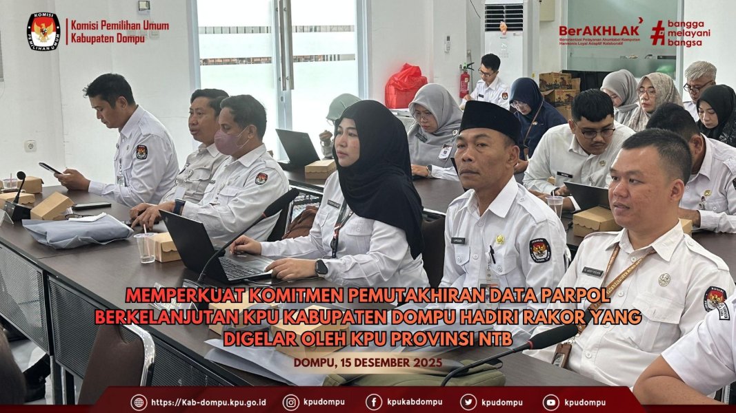 #TemanPemilih. Pada Senin, (15/12/2025), Komisi Pemilihan Umum (KPU) Provinsi Nusa Tenggara Barat (NTB) melaksanakan Rapat Koordinasi (Rakor) Pemutakhiran Data Partai Politik Berkelanjutan yang berlangsung di Ruang Aula KPU Provinsi NTB. Kegiatan ini menjadi bagian dari upaya berkelanjutan KPU Provinsi NTB dalam menjaga kualitas demokrasi pasca pemilu melalui pengelolaan data partai politik yang akurat dan mutakhir. Pemutakhiran data partai politik tidak dipandang sekadar sebagai kegiatan administratif, melainkan sebagai bagian penting dari mekanisme demokrasi yang berkelanjutan. Oleh karena itu, komitmen ini ditegaskan sebagai tanggung jawab bersama seluruh KPU Kabupaten/Kota se-Provinsi NTB. Rakor tersebut diikuti oleh Ketua Divisi Teknis Penyelenggaraan Pemilu, Kasubbag Teknis Dan Hukum, Sekretaris, serta operator Sistem Informasi Partai Politik (Sipol) dari KPU Kabupaten/Kota se-NTB, dengan tujuan menyamakan persepsi dan memperkuat pemahaman teknis terkait pelaksanaan pemutakhiran data partai politik. Ketua KPU Provinsi NTB, Muhammad Khuwailid, S.Ag., M.H., dalam sambutan pembukaannya menegaskan bahwa pemutakhiran data partai politik secara berkelanjutan merupakan fondasi penting dalam perbaikan proses pemilu ke depan. “Pemutakhiran data partai politik bukan hanya pemenuhan kewajiban administratif, tetapi langkah strategis untuk memastikan proses pemilu berjalan lebih akuntabel, transparan, dan berintegritas. Karena itu, komitmen ini harus dijaga secara konsisten oleh seluruh KPU Kabupaten/Kota,” tegasnya. Sebagai narasumber utama, Ketua Divisi Teknis Penyelenggaraan KPU Provinsi NTB, Zuriati Ahmad, menyampaikan bahwa pemutakhiran data partai politik secara berkelanjutan sangat penting untuk memastikan keabsahan kepengurusan partai politik dari tingkat pusat hingga daerah. Selain itu, partai politik juga didorong untuk memperbarui data keanggotaan, menyesuaikan alamat kantor, serta memperjelas struktur kepengurusan agar mudah diakses oleh publik dan penyelenggara pemilu. KPU Kabupaten Dompu turut berpartisipasi dalam kegiatan ini yang diwakili oleh Ketua Divisi Teknis Penyelenggaraan Pemilu Hidayatullah, Sekretaris Lahmuddin, serta satu orang Staf Teknis Penyelenggara dan Hukum. Menurut Hidayatullah, rakor ini memberikan penguatan teknis yang sangat dibutuhkan oleh jajaran KPU di daerah. “Melalui rakor ini, kami memperoleh pemahaman yang lebih komprehensif terkait pemutakhiran data partai politik secara berkelanjutan, khususnya dalam penggunaan Sipol sebagai instrumen utama,” ujarnya. Sementara itu, Sekretaris KPU Kabupaten Dompu, Lahmuddin, menekankan pentingnya sinergi antara aspek teknis dan dukungan kesekretariatan dalam pelaksanaan pemutakhiran data parpol. “Keakuratan dan keberlanjutan data partai politik membutuhkan dukungan administrasi dan tata kelola yang tertib. Karena itu, peran kesekretariatan menjadi sangat penting untuk memastikan seluruh proses berjalan sesuai ketentuan dan terdokumentasi dengan baik,” ungkap Lahmuddin. Sebagai penutup rangkaian kegiatan, seluruh peserta mengikuti simulasi pemutakhiran data partai politik menggunakan aplikasi Sipol, dengan membahas berbagai kasus yang kerap dihadapi KPU Kabupaten/Kota dalam pelaksanaan pemutakhiran data partai politik di daerah masing-masing. Kegiatan ini diharapkan mampu meningkatkan kesiapan teknis dan kualitas pelaksanaan pemutakhiran data partai politik secara berkelanjutan.