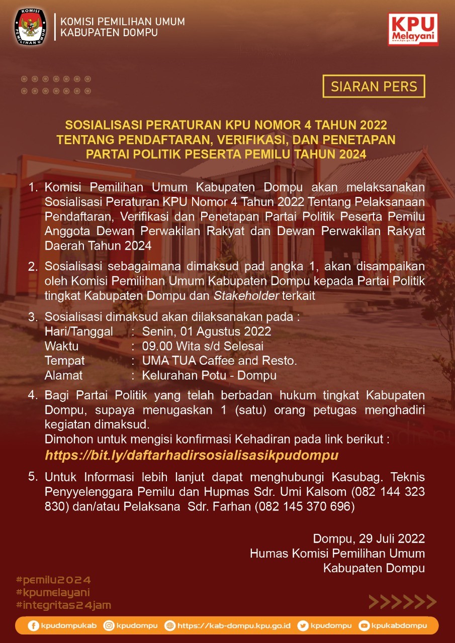Hadir mengikuti, Ketua Bawaslu Kabupaten Dompu Drs. Irwan bersama Anggota, Kasi Siak Dukcapil Kabupaten Dompu Drs. Imran juga Pimpinan Partai Politik se Kabupaten Dompu.
