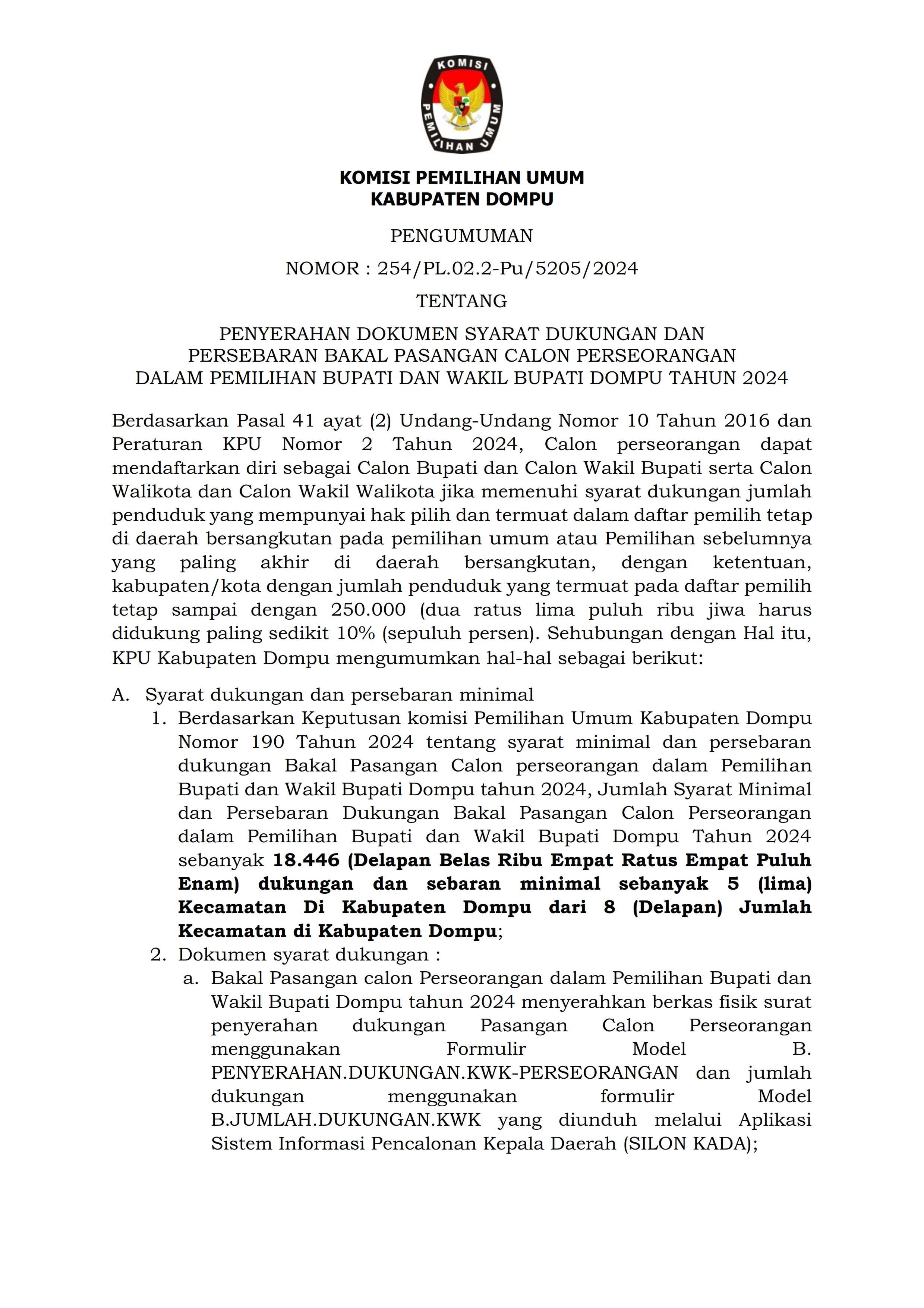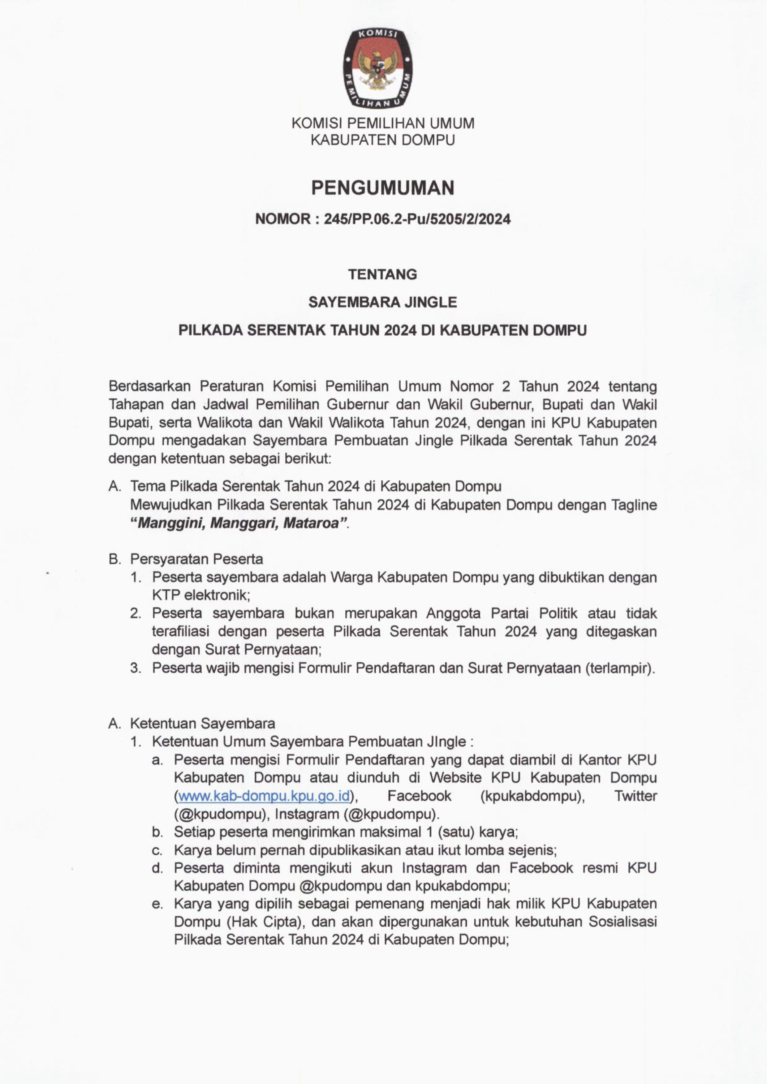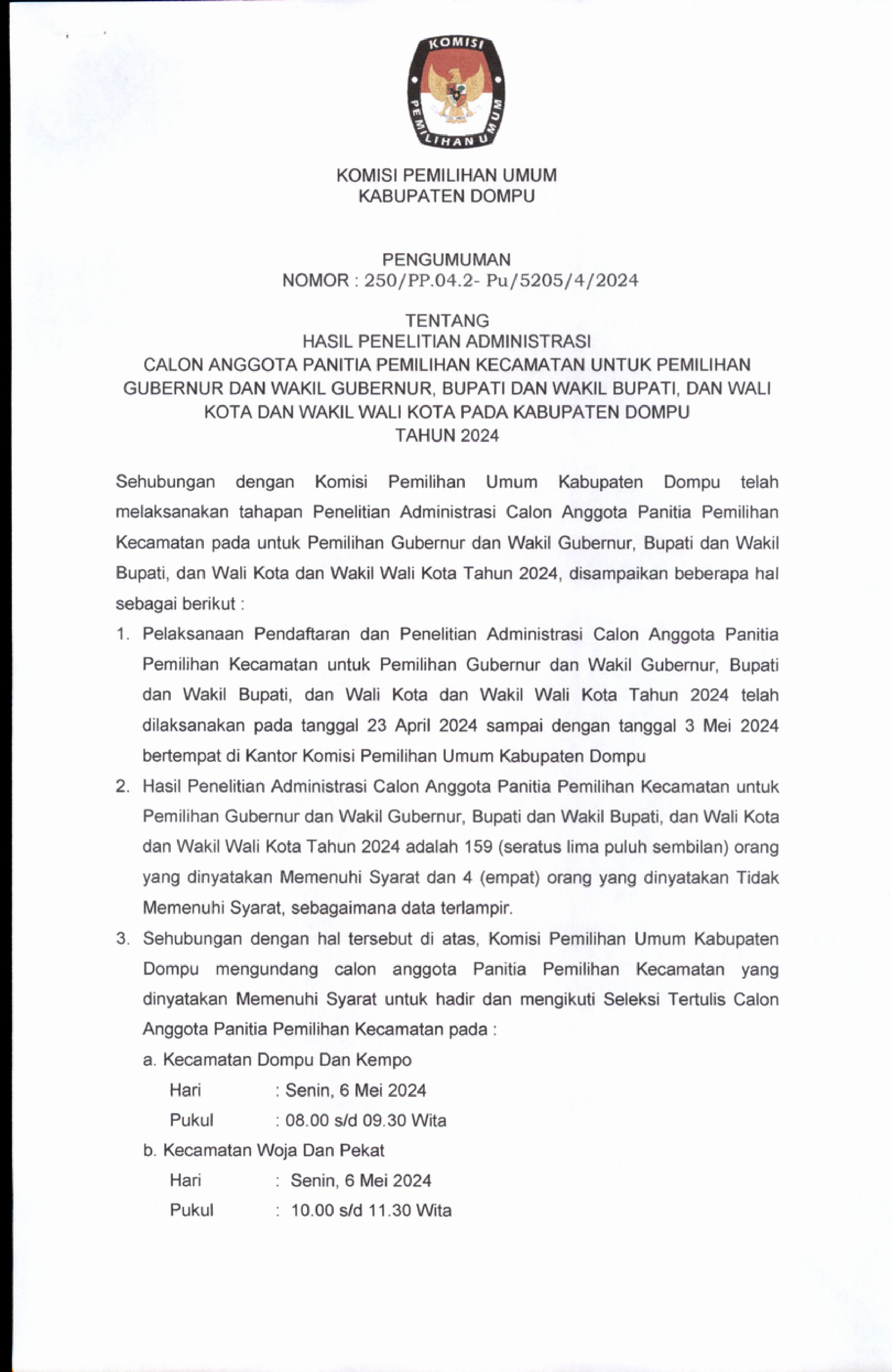 PERPANJANGAN PENDAFTARAN SELEKSI CALON ANGGOTA PANITIA PEMUNGUTAN SUARA UNTUK PEMILIHAN GUBERNUR DAN WAKIL GUBERNUR, BUPATI DAN WAKIL BUPATI, DAN WALI KOTA DAN WAKIL WALI KOTA PADA KABUPATEN DOMPU TAHUN 2024